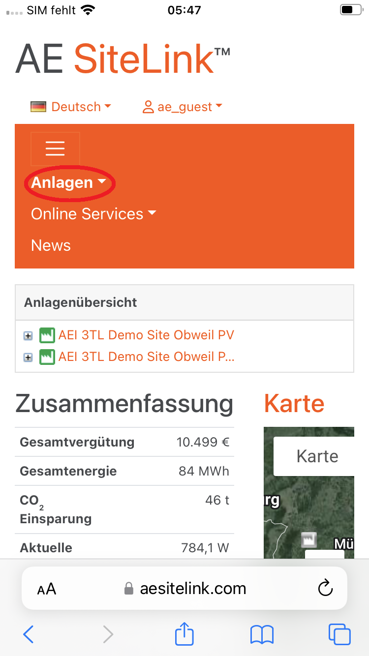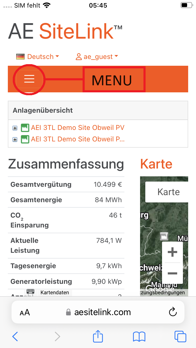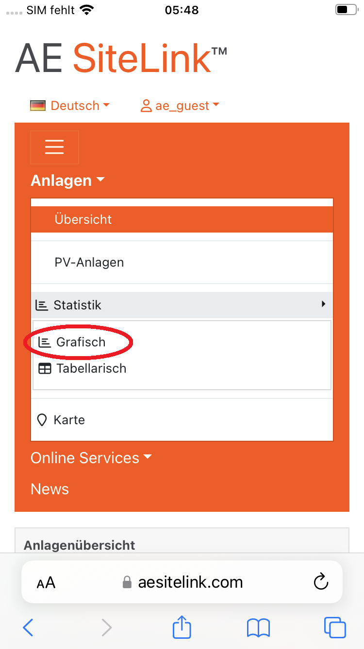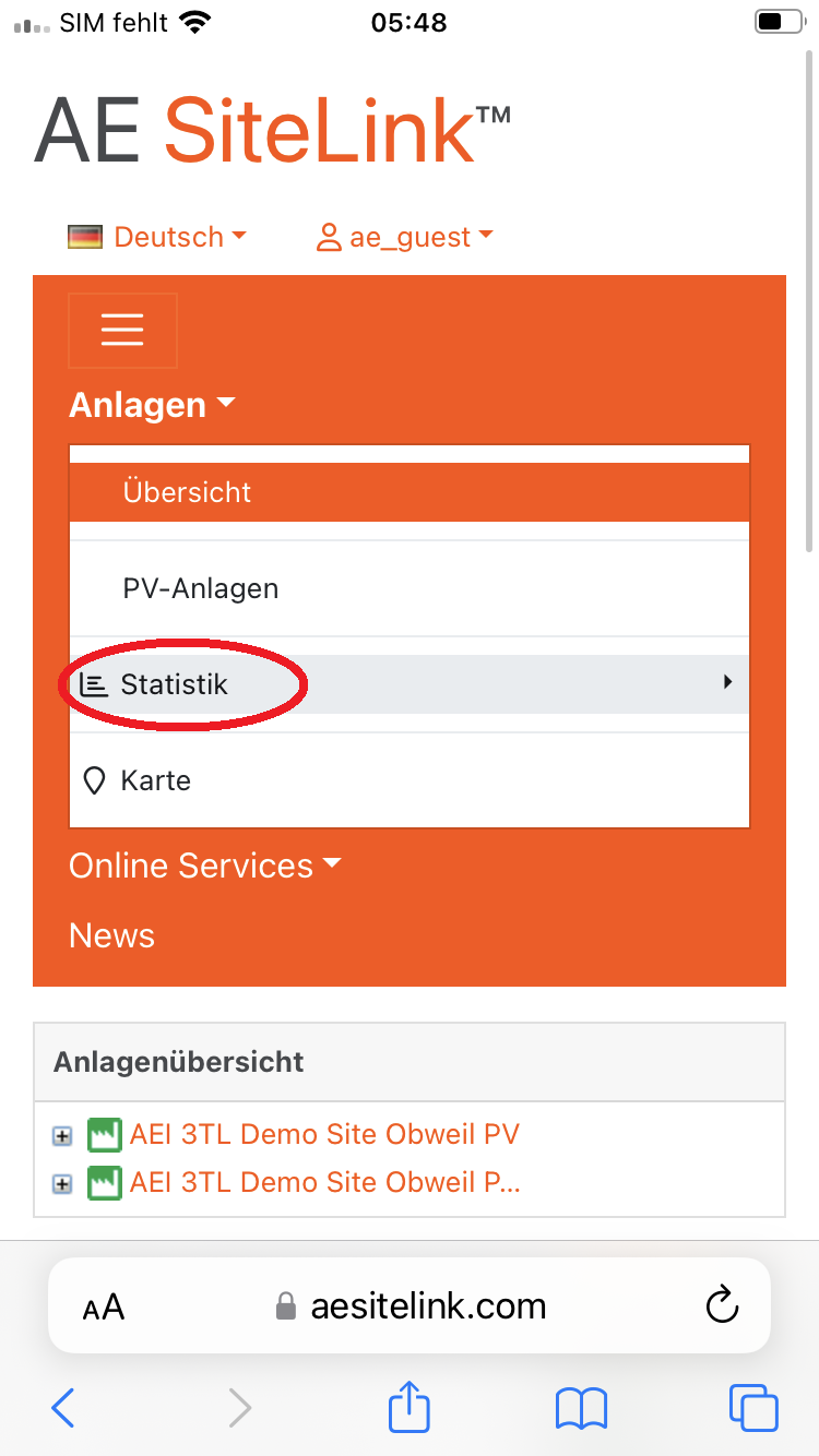 Als Alternative können Sie AE SiteLink mittels Browser auf ihrem Mobilgerät (Smart Phone oder Tablet) aufrufen und die Web Version nutzen. Für die Nutzung der graphischen Statistik auf einem Mobilgerät haben wir nachfolgend eine Anleitung erstellt.