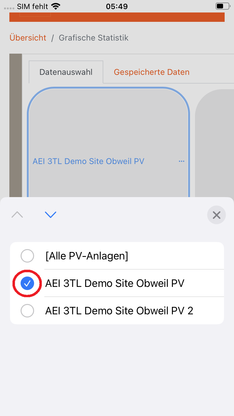 - 8. Wählen Sie eine Anlage und gegebenenfalls eine Teilanlage aus